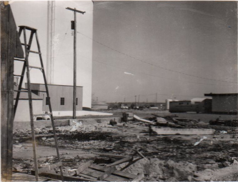 Lang's Garage demolition. Photograph scraped from the Beautification Scrapbooks held by Reardan Memorial Library.