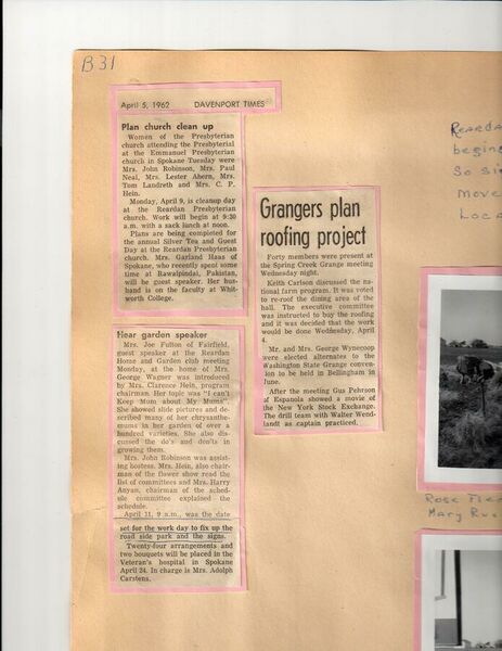 Davenport Times article about clean up projects. Part of the Beautification Scrapbooks held by Reardan Memorial Library.