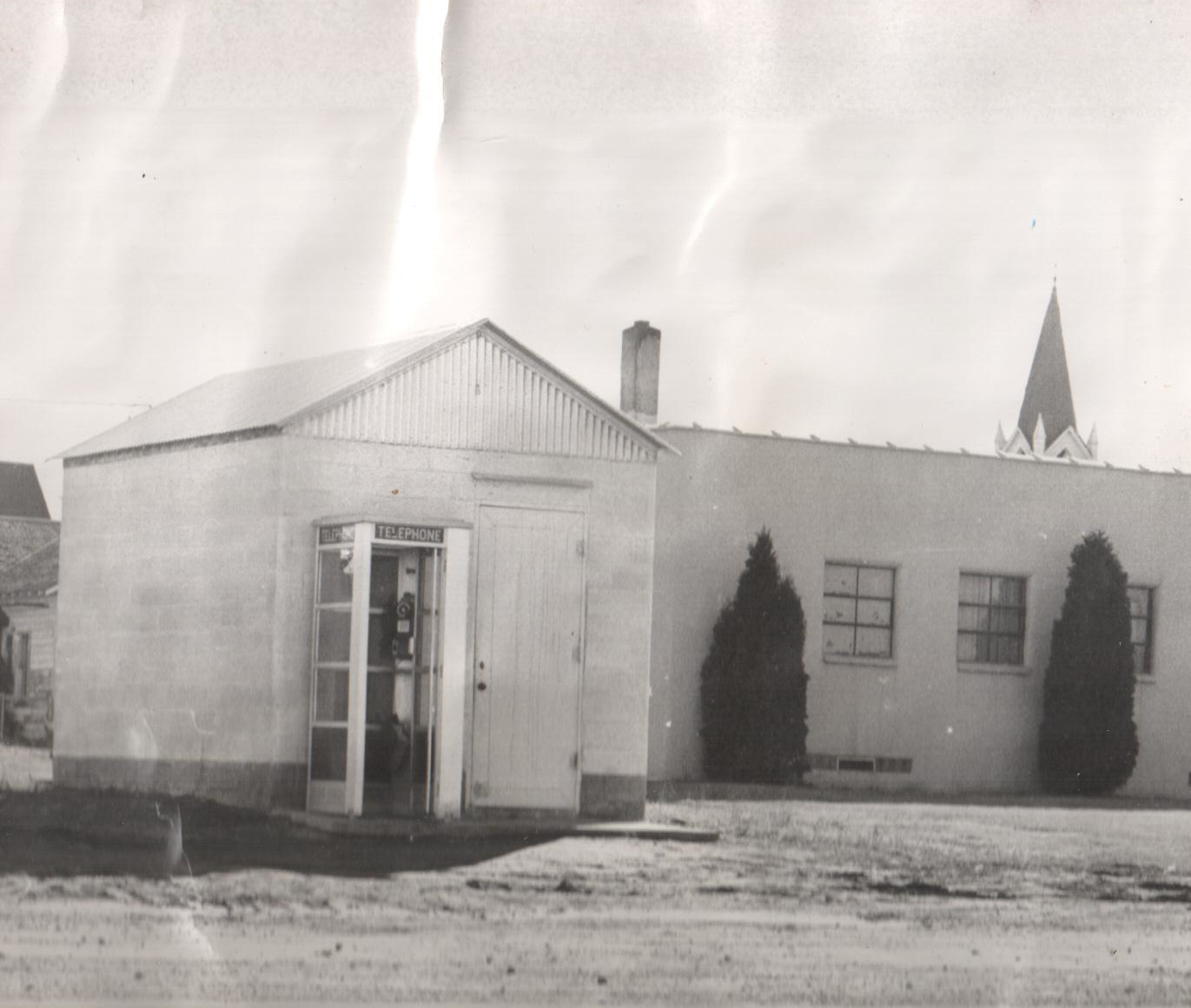 General Telephone switching office before planter. Photograph scraped from the Beautification Scrapbooks held by Reardan Memorial Library.