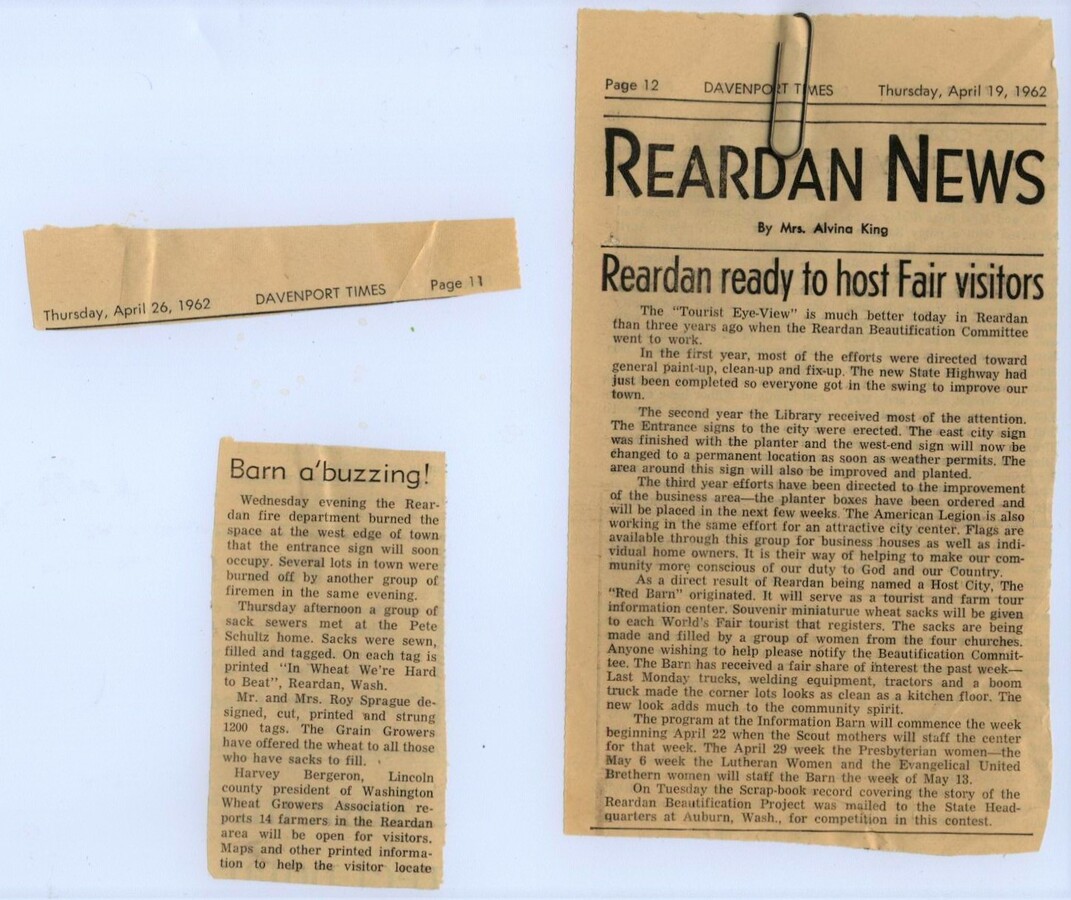 Davenport Times article on Reardan ready to host Fair visitors. Part of the Beautification Scrapbooks held by the Reardan Memorial Library.