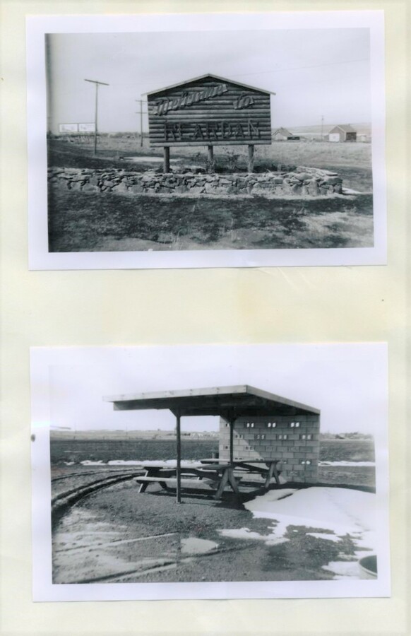 Photo of welcome sign and picnic area. Part of the Beautification Scrapbooks held by the Reardan Memorial Library.