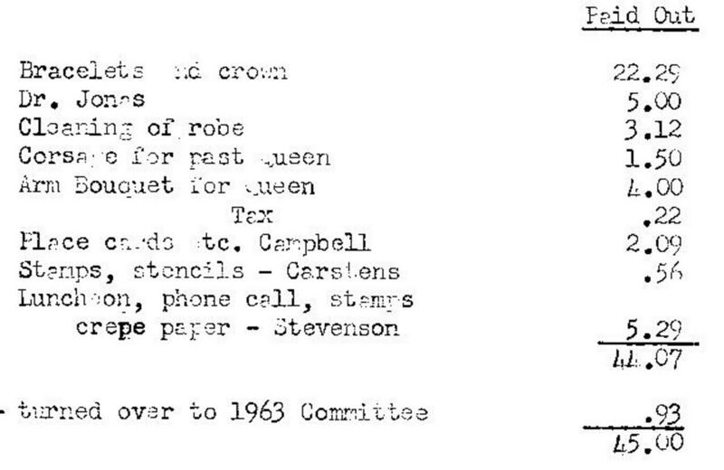 This page is from a scrapbook held by the Reardan Memorial Library about the Reardan Royalty. 1962 royalty 014