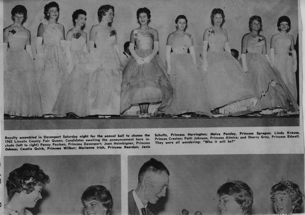This page is from a scrapbook held by the Reardan Memorial Library about the Reardan Royalty. 1962 royalty 021