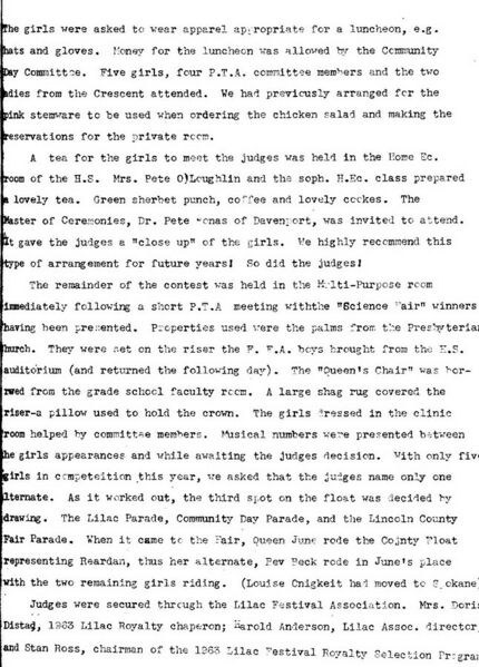 This page is from a scrapbook held by the Reardan Memorial Library about the Reardan Royalty. 1963 royalty 004