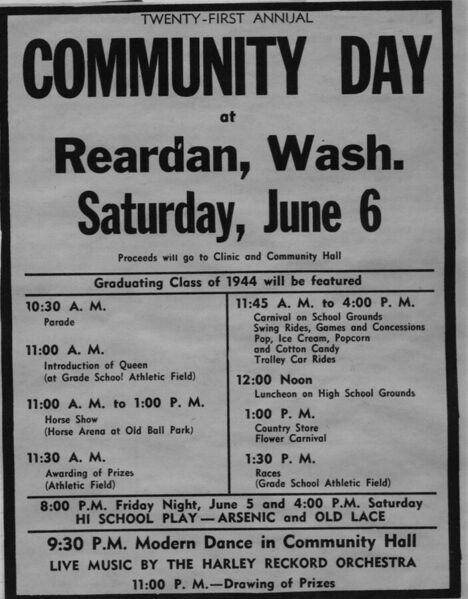 This page is from a scrapbook held by the Reardan Memorial Library about the Reardan Mule Days. 019