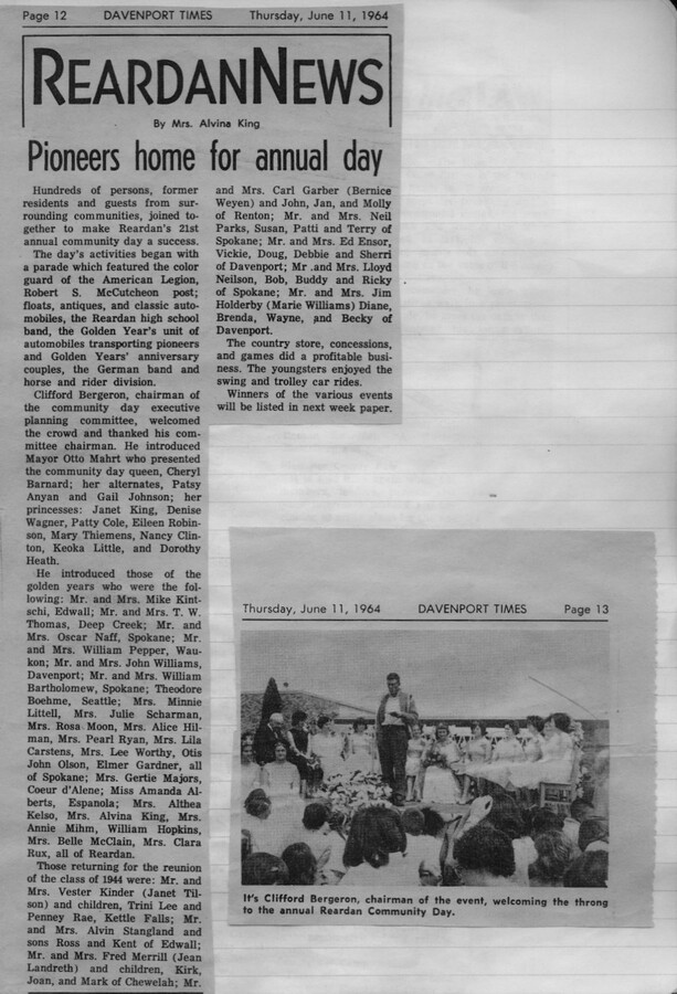 This page is from a scrapbook held by the Reardan Memorial Library about the Reardan Mule Days. 021