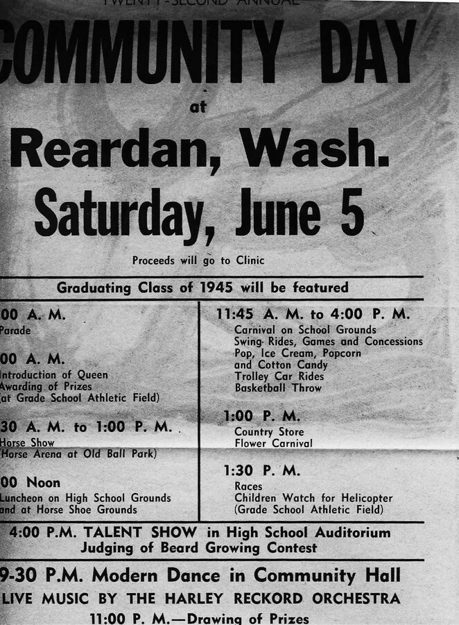 This page is from a scrapbook held by the Reardan Memorial Library about the Reardan Mule Days. 021