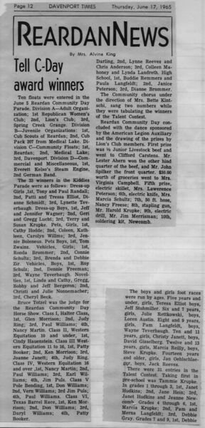 This page is from a scrapbook held by the Reardan Memorial Library about the Reardan Mule Days. 039