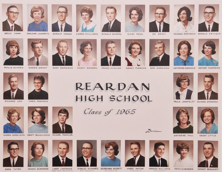 Class composite for 1965. (Photo held by Reardan High School and harvested off of their website).