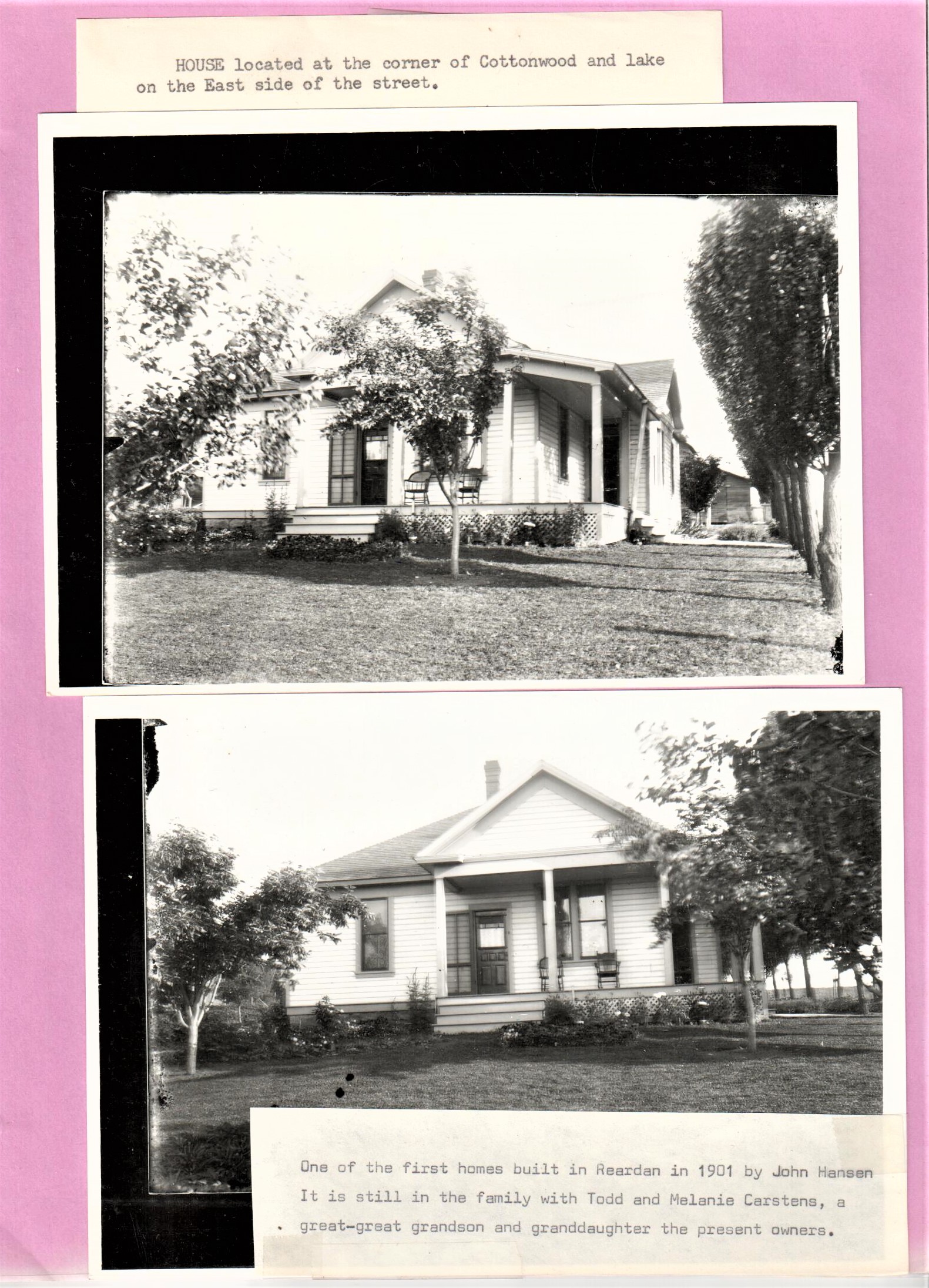 John Hansen house built in 1901 on south east corner of Cottonwood Avenue and Lake Street. (Held by the Reardan Memorial Library)