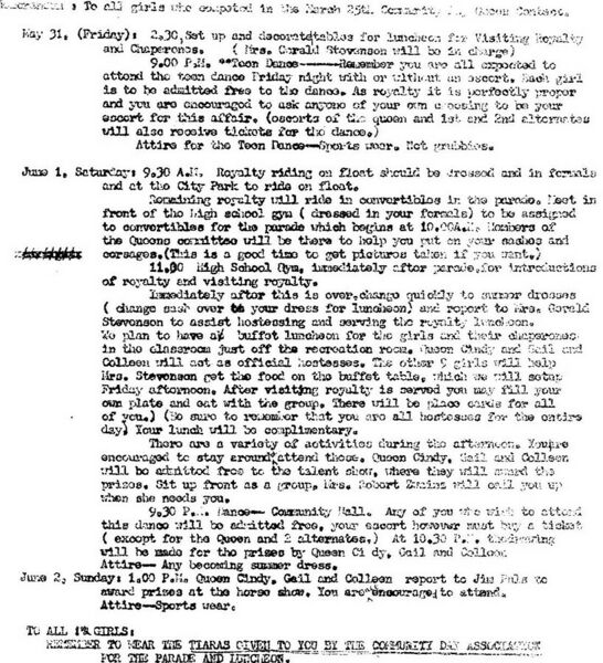 This page is from a scrapbook held by the Reardan Memorial Library about the Reardan Royalty. 1965 royalty 007