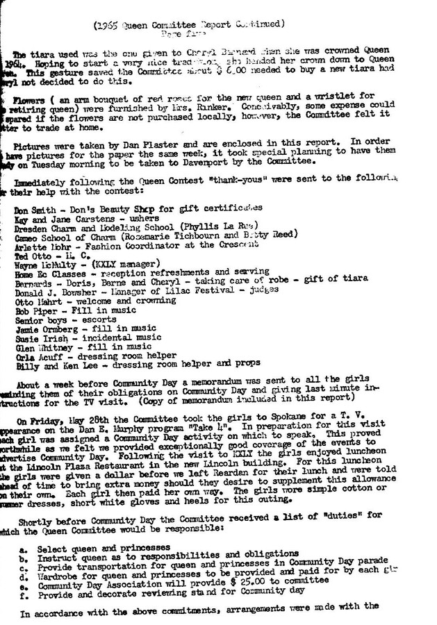 This page is from a scrapbook held by the Reardan Memorial Library about the Reardan Royalty. 1965 royalty 012