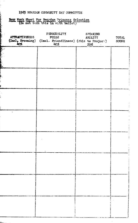This page is from a scrapbook held by the Reardan Memorial Library about the Reardan Royalty. 1965 royalty 023