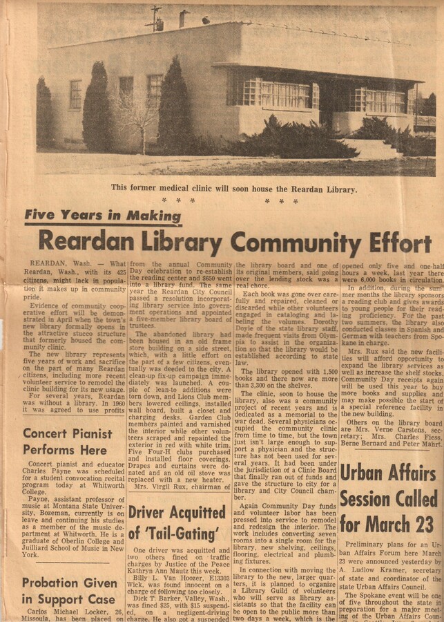 from Memorial Library scrapbook held by the Reardan Memorial Library.