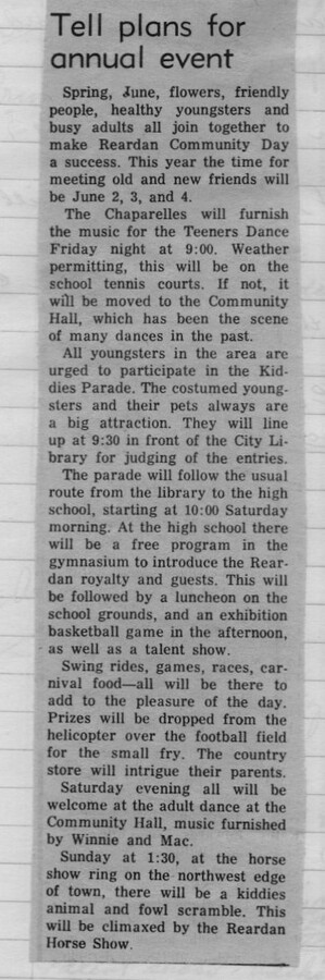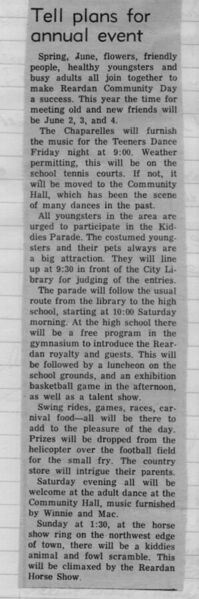 This page is from a scrapbook held by the Reardan Memorial Library about the Reardan Mule Days. 062