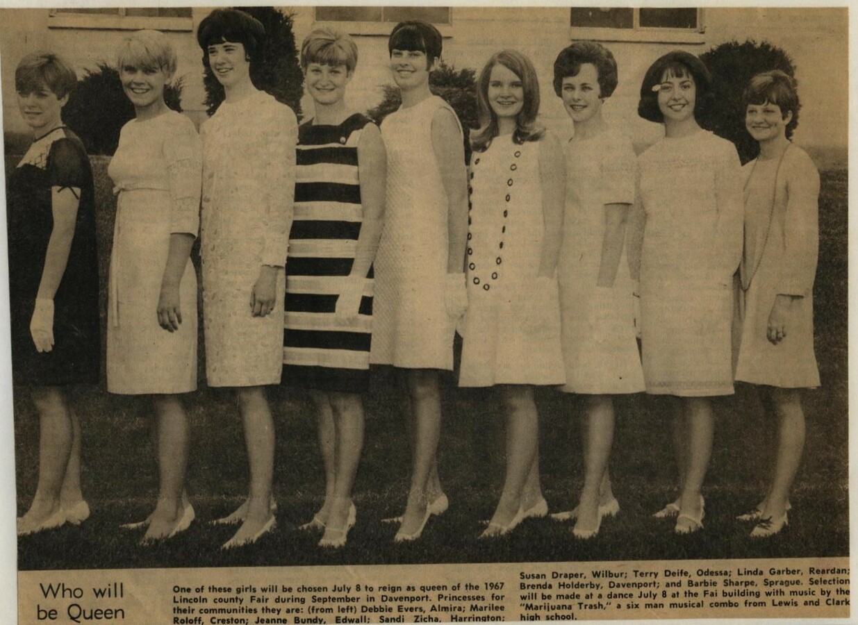 This page is from a scrapbook held by the Reardan Memorial Library about the Reardan Royalty. 1967 royalty 010