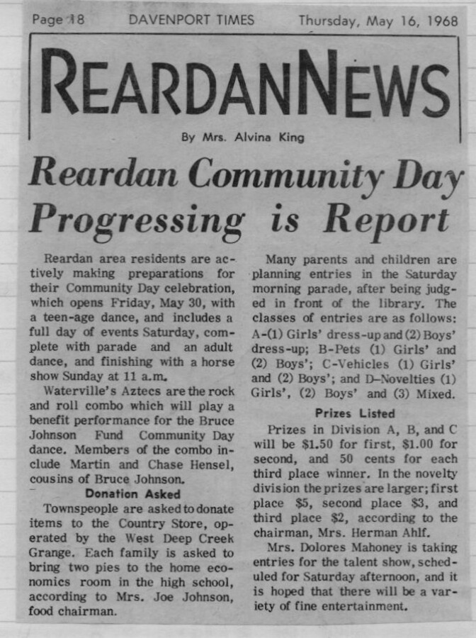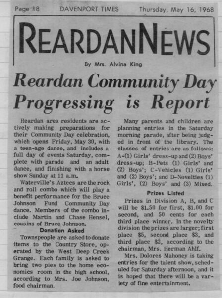 This page is from a scrapbook held by the Reardan Memorial Library about the Reardan Mule Days. 068