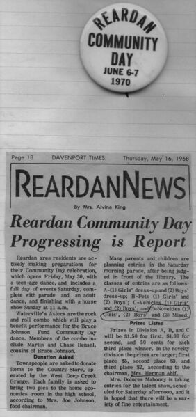 This page is from a scrapbook held by the Reardan Memorial Library about the Reardan Mule Days. 072