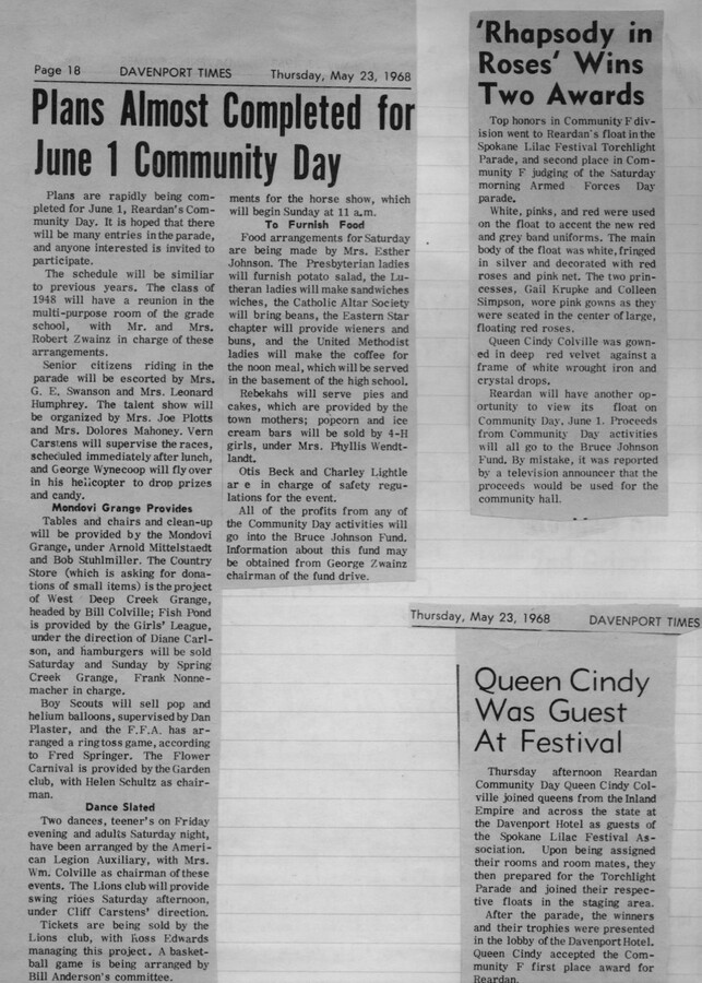 This page is from a scrapbook held by the Reardan Memorial Library about the Reardan Mule Days. 065