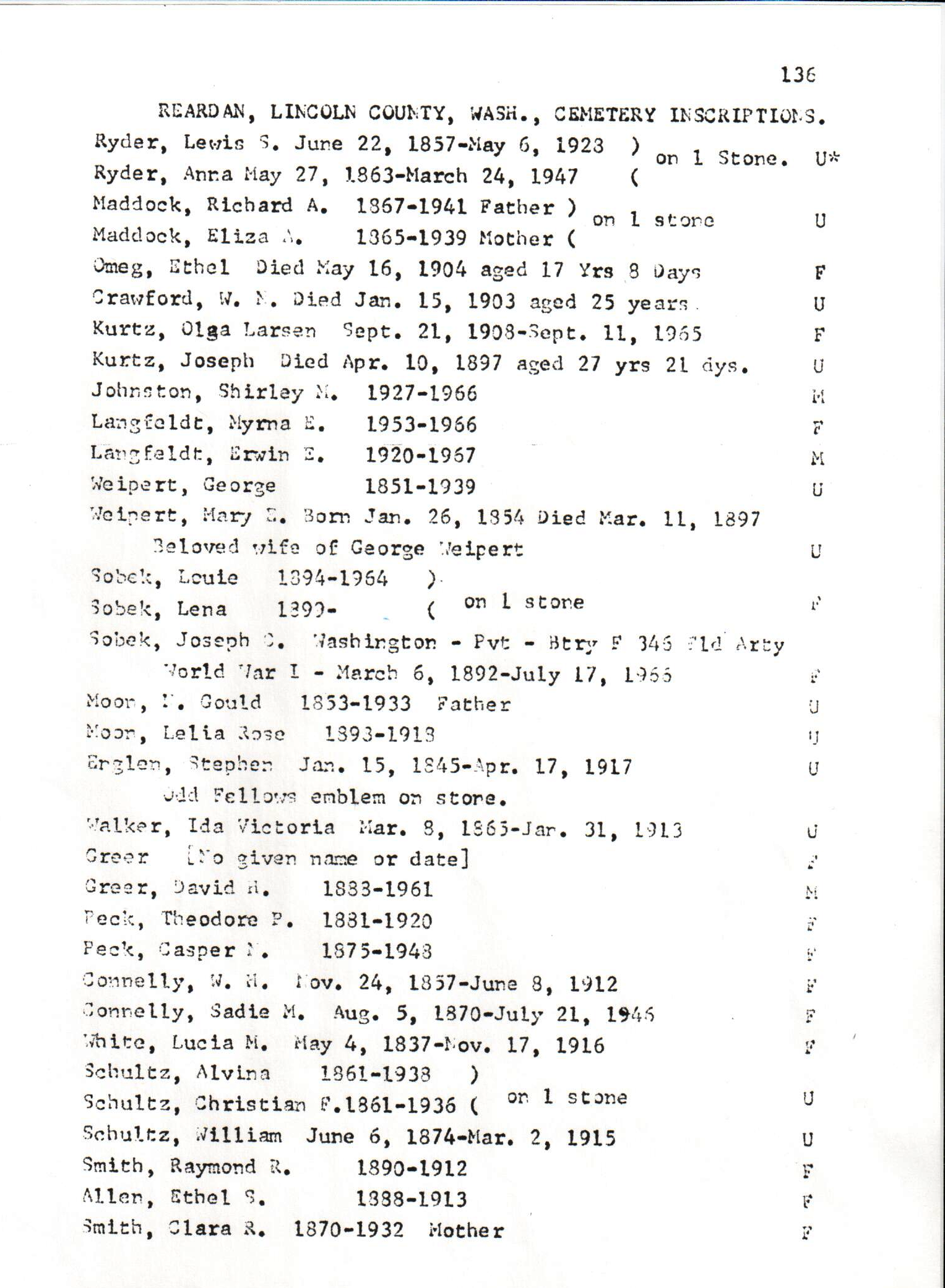This looks like an official filing done in 1968 to describe the Reardan Cemetery. Source unknown held by the Reardan Memorial Library.