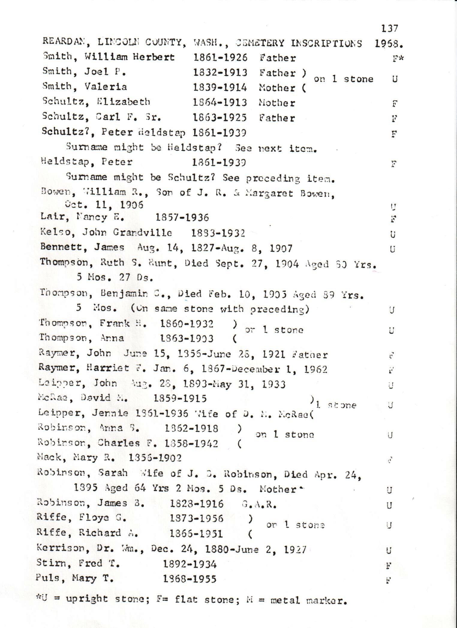 This looks like an official filing done in 1968 to describe the Reardan Cemetery. Source unknown held by the Reardan Memorial Library.