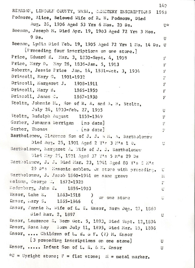 This looks like an official filing done in 1968 to describe the Reardan Cemetery. Source unknown held by the Reardan Memorial Library.