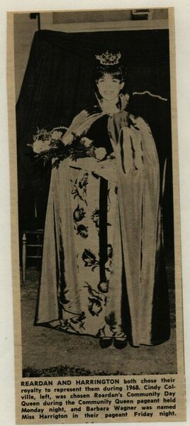 This page is from a scrapbook held by the Reardan Memorial Library about the Reardan Royalty. 1968 royalty 006