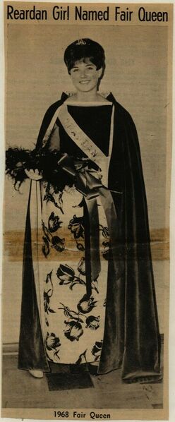 This page is from a scrapbook held by the Reardan Memorial Library about the Reardan Royalty. 1968 royalty 011