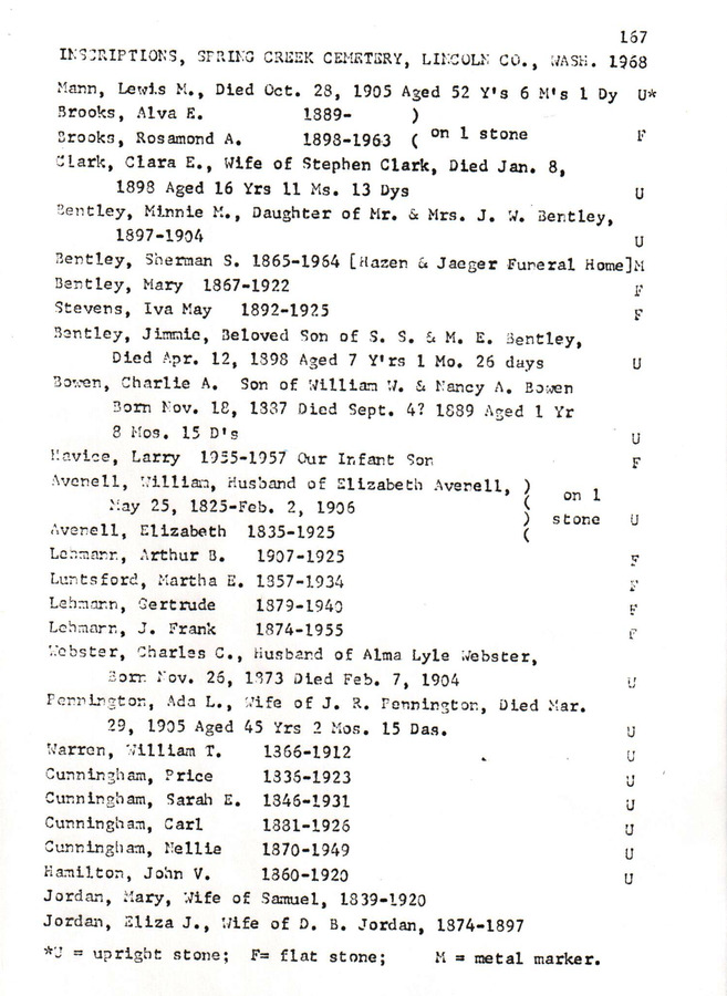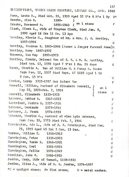 This looks like an official filing done in 1968 to describe the Spring Creek Cemetery. Source unknown held by the Reardan Memorial Library.
