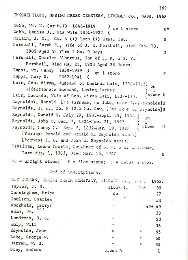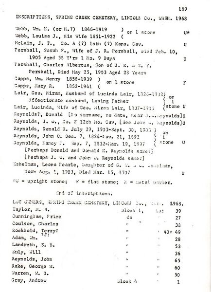 This looks like an official filing done in 1968 to describe the Spring Creek Cemetery. Source unknown held by the Reardan Memorial Library.