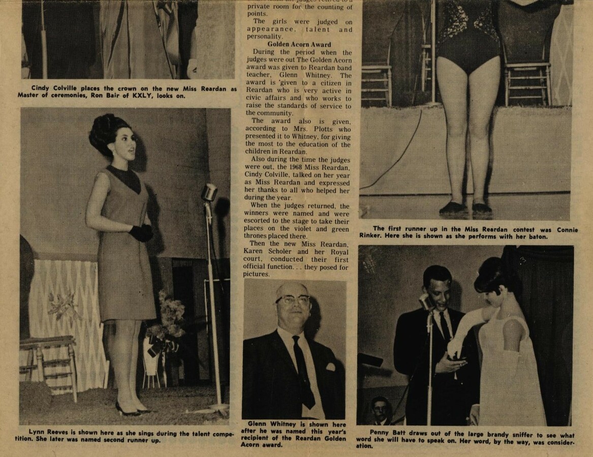 This page is from a scrapbook held by the Reardan Memorial Library about the Reardan Royalty. 1969 royalty 003