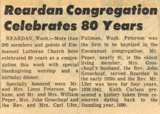 1970 Emmanual Lutheran Church 80th anniversary clipping