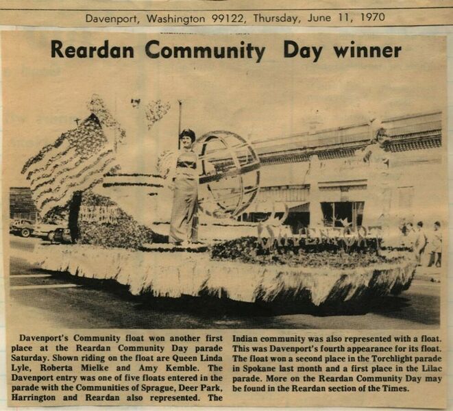 This page is from a scrapbook held by the Reardan Memorial Library about the Reardan Royalty. 1970 royalty 001