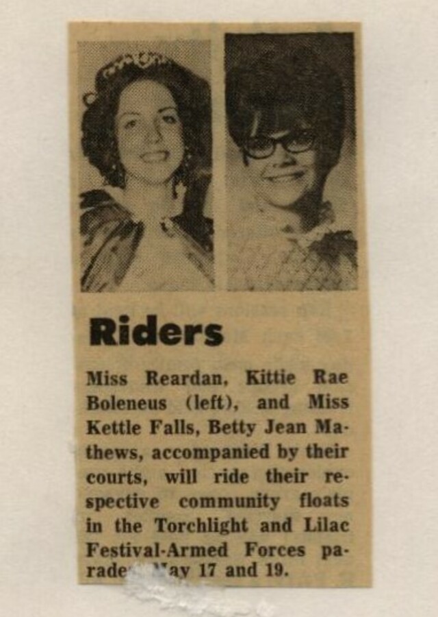 This page is from a scrapbook held by the Reardan Memorial Library about the Reardan Royalty. 1973 royalty 021