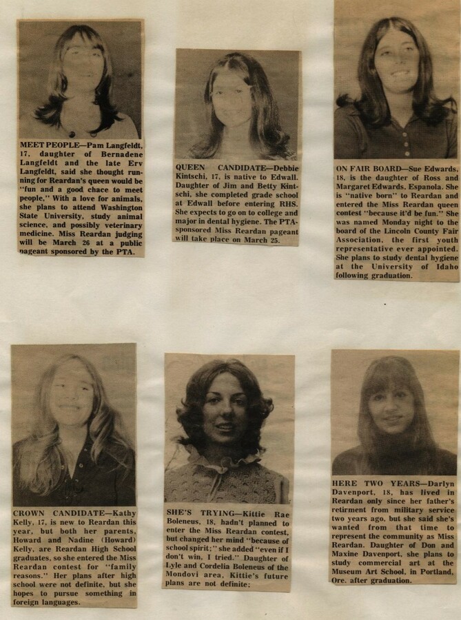 This page is from a scrapbook held by the Reardan Memorial Library about the Reardan Royalty. 1973 royalty 028