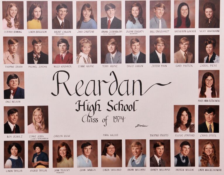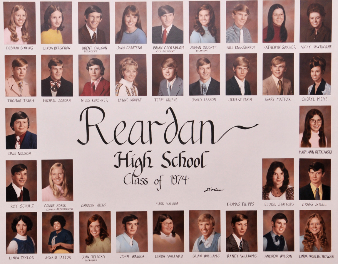 Class composite for 1974. (Photo held by Reardan High School and harvested off of their website).
