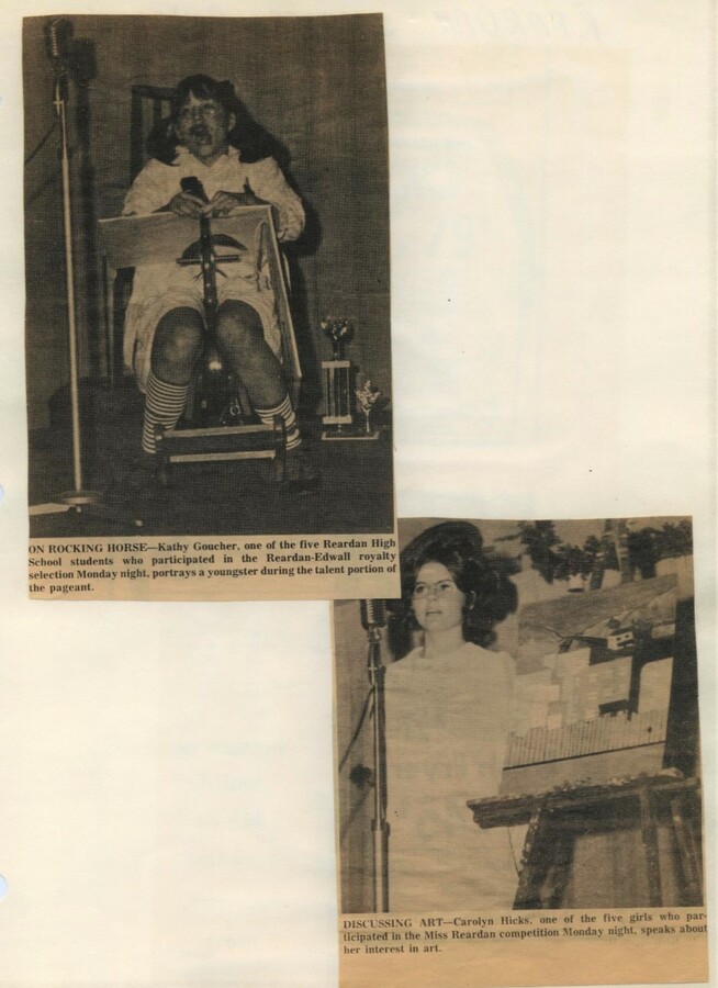 This page is from a scrapbook held by the Reardan Memorial Library about the Reardan Royalty. 1974 royalty 004
