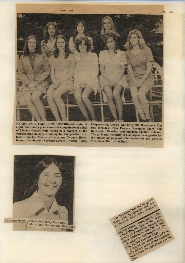 This page is from a scrapbook held by the Reardan Memorial Library about the Reardan Royalty. 1974 royalty 012
