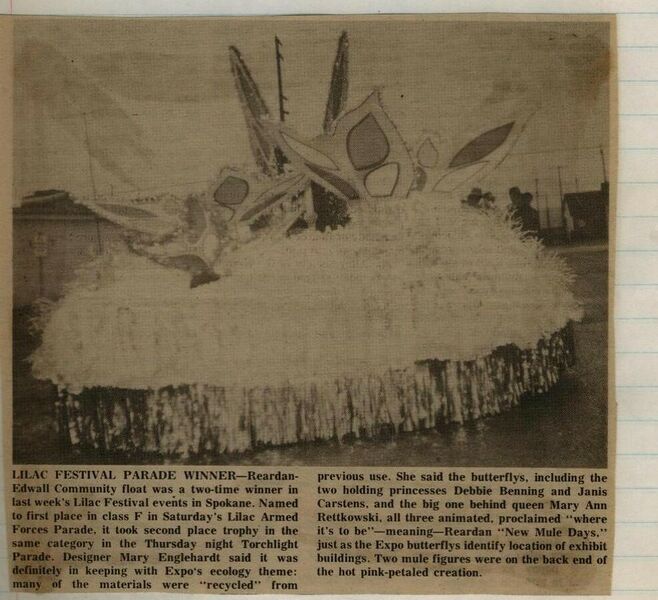 This page is from a scrapbook held by the Reardan Memorial Library about the Reardan Royalty. 1974 royalty 019
