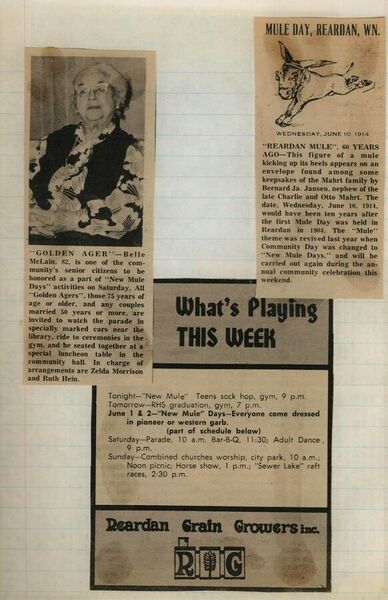 This page is from a scrapbook held by the Reardan Memorial Library about the Reardan Royalty. 1974 royalty 022