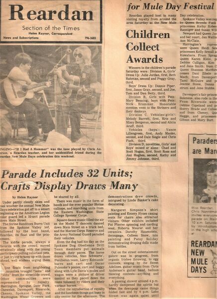 This page is from a scrapbook held by the Reardan Memorial Library about the Reardan Mule Days. 006