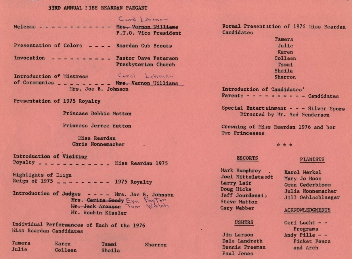 This page is from a scrapbook held by the Reardan Memorial Library about the Reardan Royalty. 1976 royalty 001