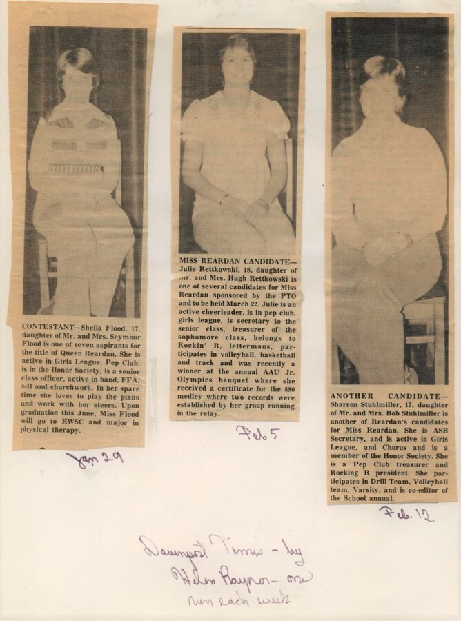 This page is from a scrapbook held by the Reardan Memorial Library about the Reardan Royalty. 1976 royalty 003