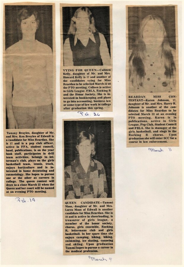 This page is from a scrapbook held by the Reardan Memorial Library about the Reardan Royalty. 1976 royalty 004