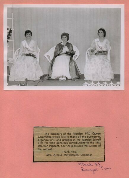 This page is from a scrapbook held by the Reardan Memorial Library about the Reardan Royalty. 1976 royalty 024