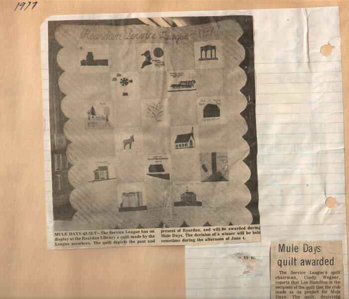 This page is from a scrapbook held by the Reardan Memorial Library about the Reardan Mule Days. 003