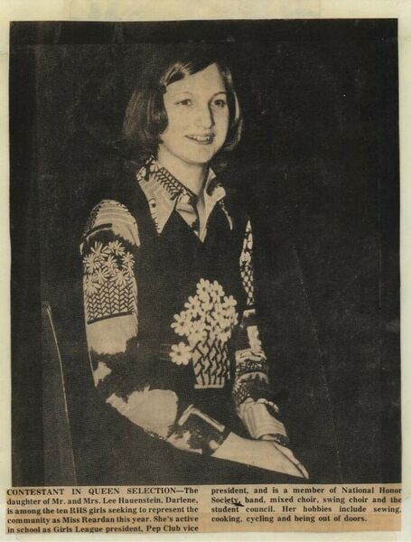 This page is from a scrapbook held by the Reardan Memorial Library about the Reardan Royalty. 1977 royalty 003