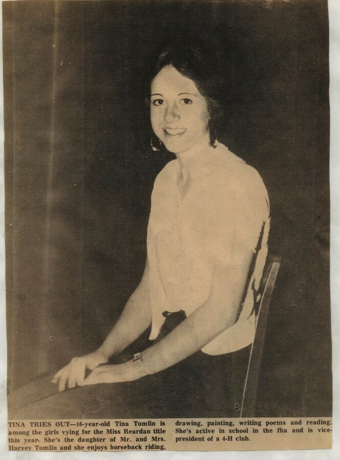 This page is from a scrapbook held by the Reardan Memorial Library about the Reardan Royalty. 1977 royalty 006