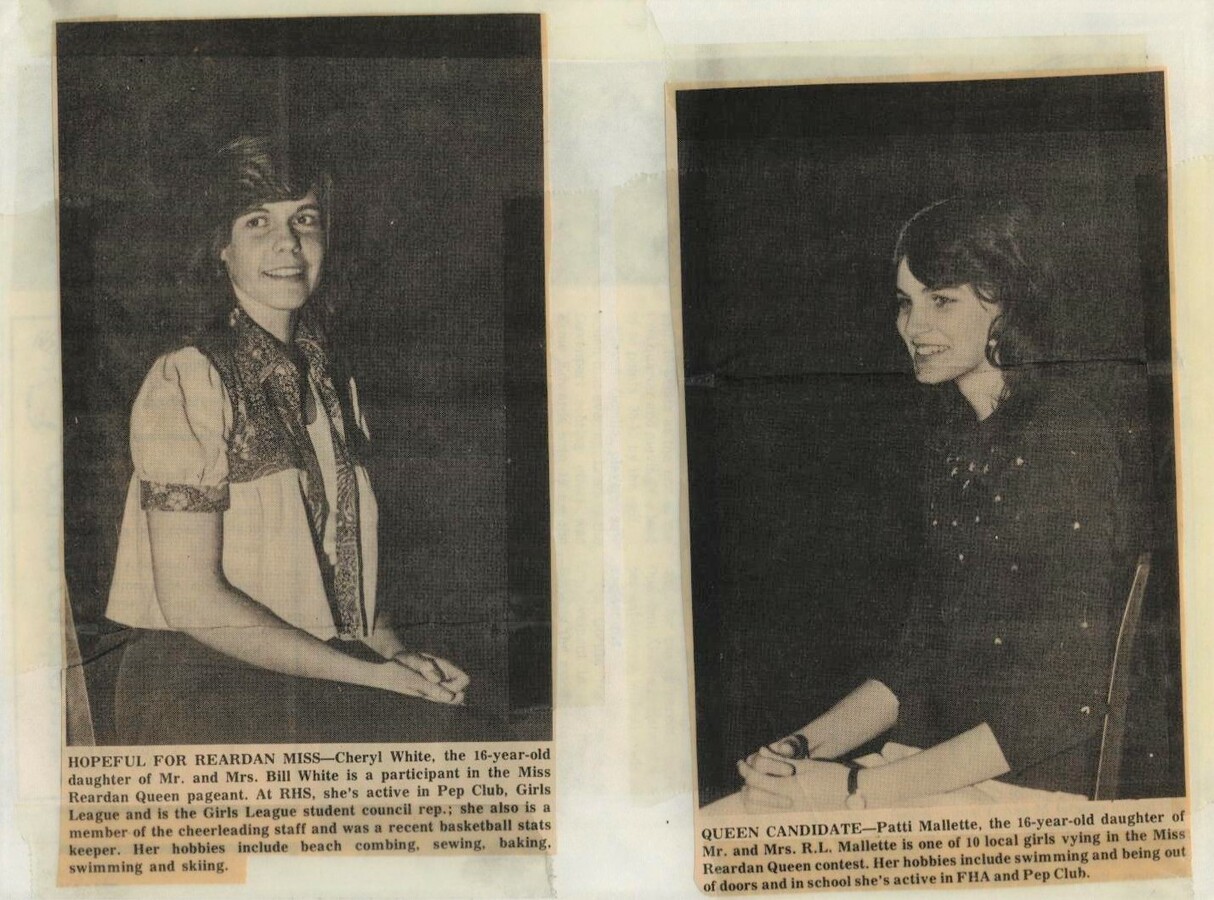 This page is from a scrapbook held by the Reardan Memorial Library about the Reardan Royalty. 1977 royalty 009