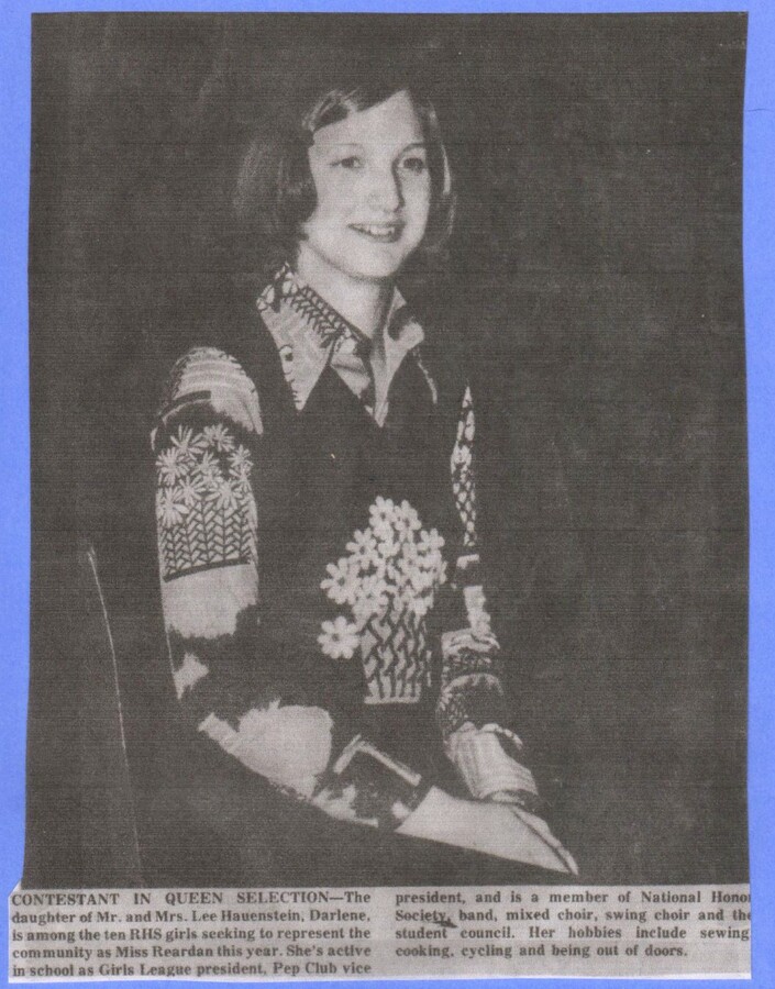 This page is from a scrapbook held by the Reardan Memorial Library about the Reardan Royalty. 1977 royalty 019